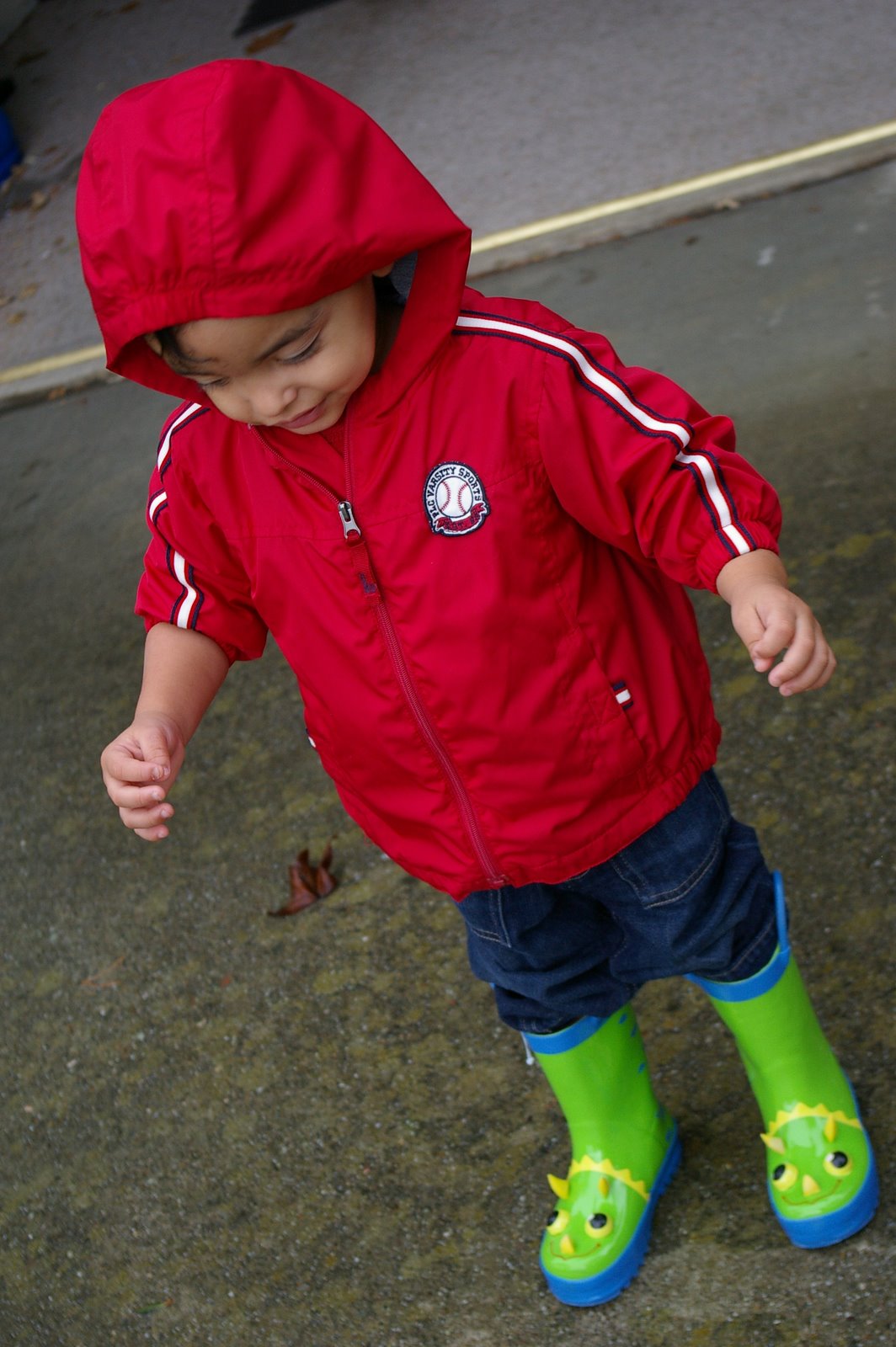 Tyson wasn’t sure of his new rain boots when we first bought them. In fact, he refused to try them on in the store. That night. Or the next day. However, one afternoon a couple days later I looked over and he had put them on all by himself. His new “