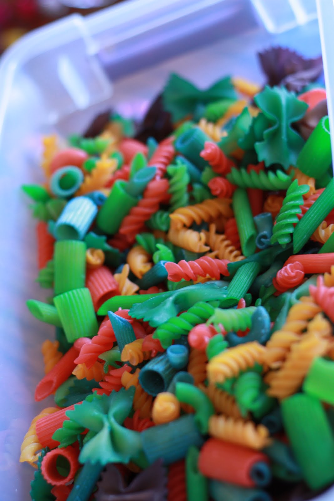 Posted: March 21, 2010 Filed under: Arts and Crafts, Fun Activity Leave a commentSecond batch of dyed pasta. So much more color. Finally got it down. Take one Tupperware of colored pasta: