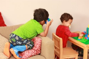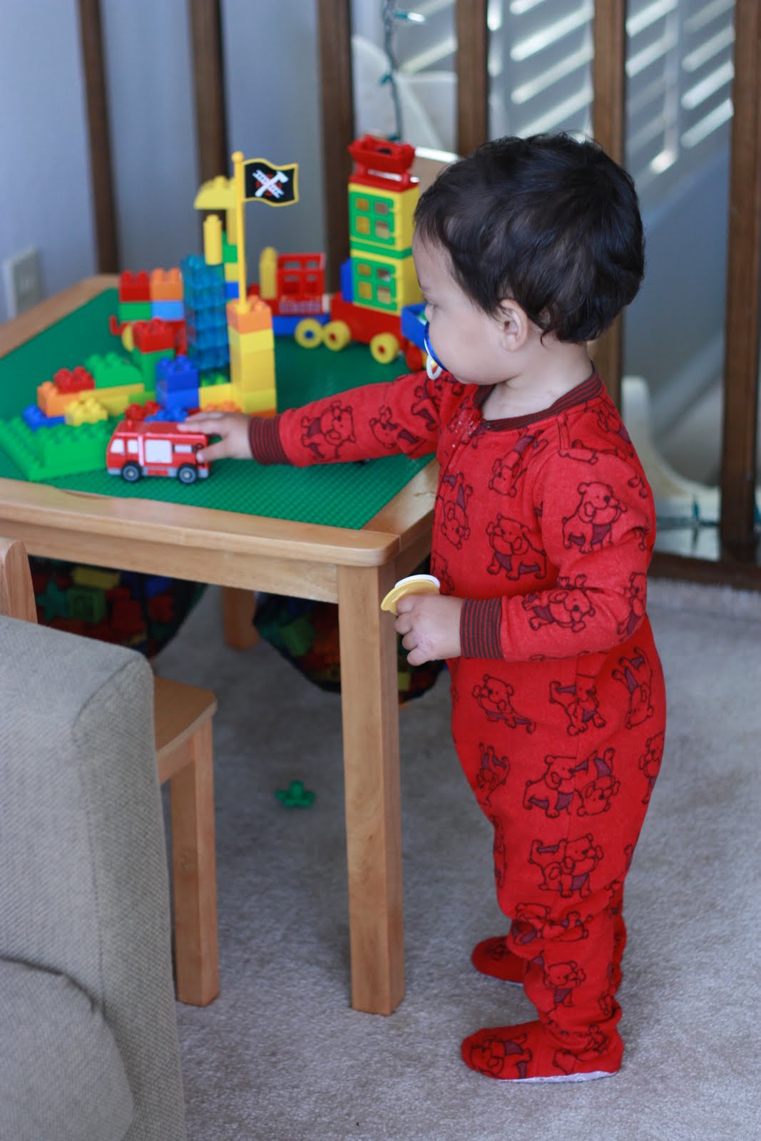More play time at the Lego table (the top flips over so it can be a simple table as well. The boys spend a LOT of time sitting at the table playing legos, cars, reading, drawing…). Jake is still carrying around two binks: