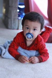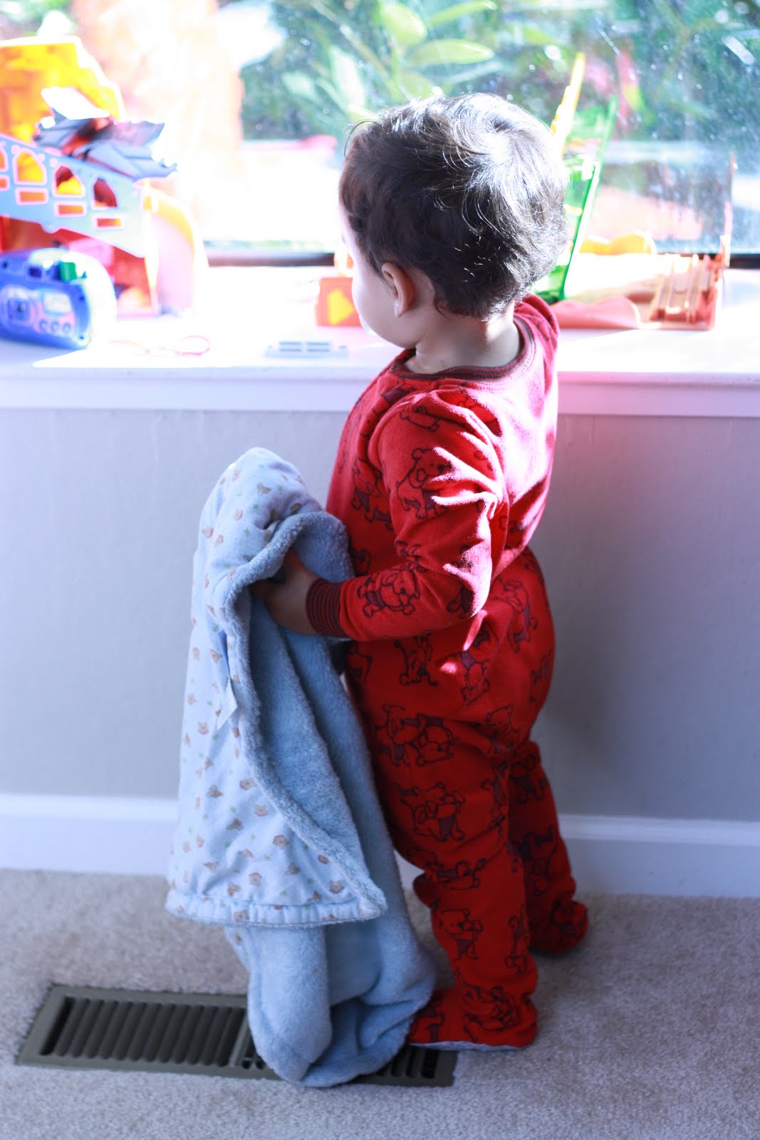 Having slept through my running alarm, I was startled awake by a three and a half year old poking my eye and asking to sleep in my bed at 6:05. Shortly followed by the cries of his brother…I walk into this sight almost daily. Jake + blankey + binky in mouth + one bink just in case: