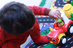 He’s recently discovered his Little People toys. I love watching him play with them and listening to the sounds he makes. He was “moo’ing” as he put the farmer into the tractor and placed a cow on the back: