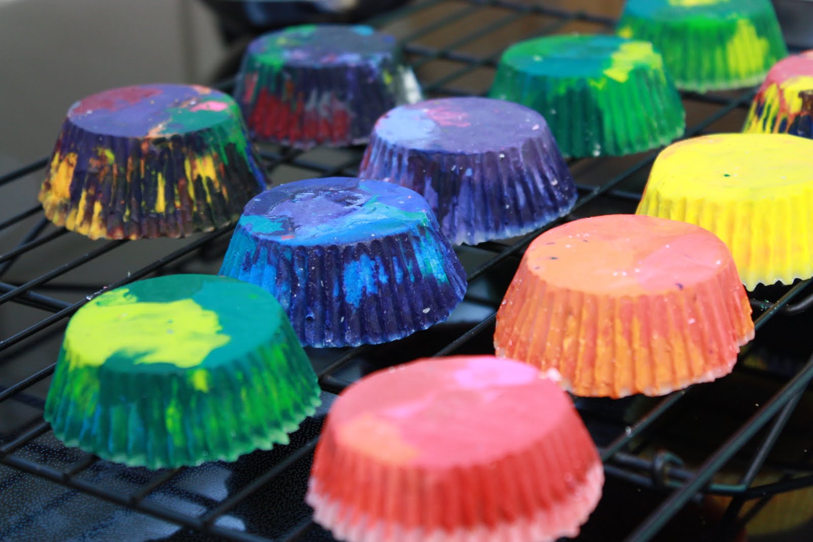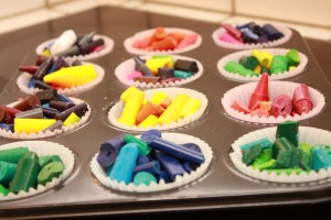 I took our crayon creations out of the freezer and took them out of the cupcake liners. They came out fabulously. SUPER easy project: