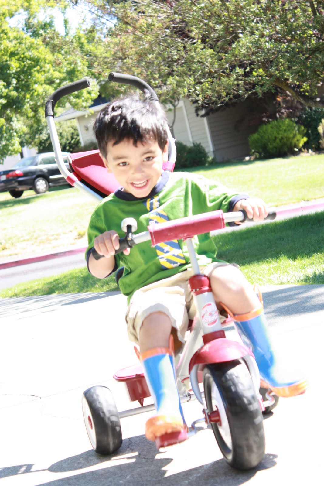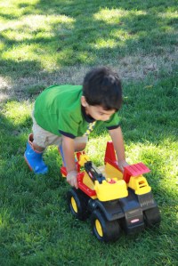 Until the boys realized the fun, pavement trucks came with a smell. We headed to the backyard for some water table fun: