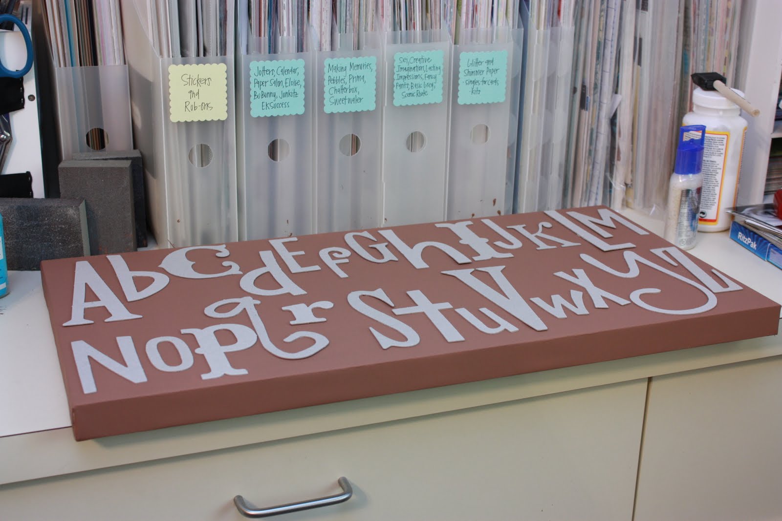 I ended up switching some of the chipboard letters out for some corrugated ones to add texture. I painted a few letters, mod podged a few…