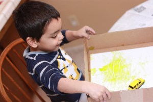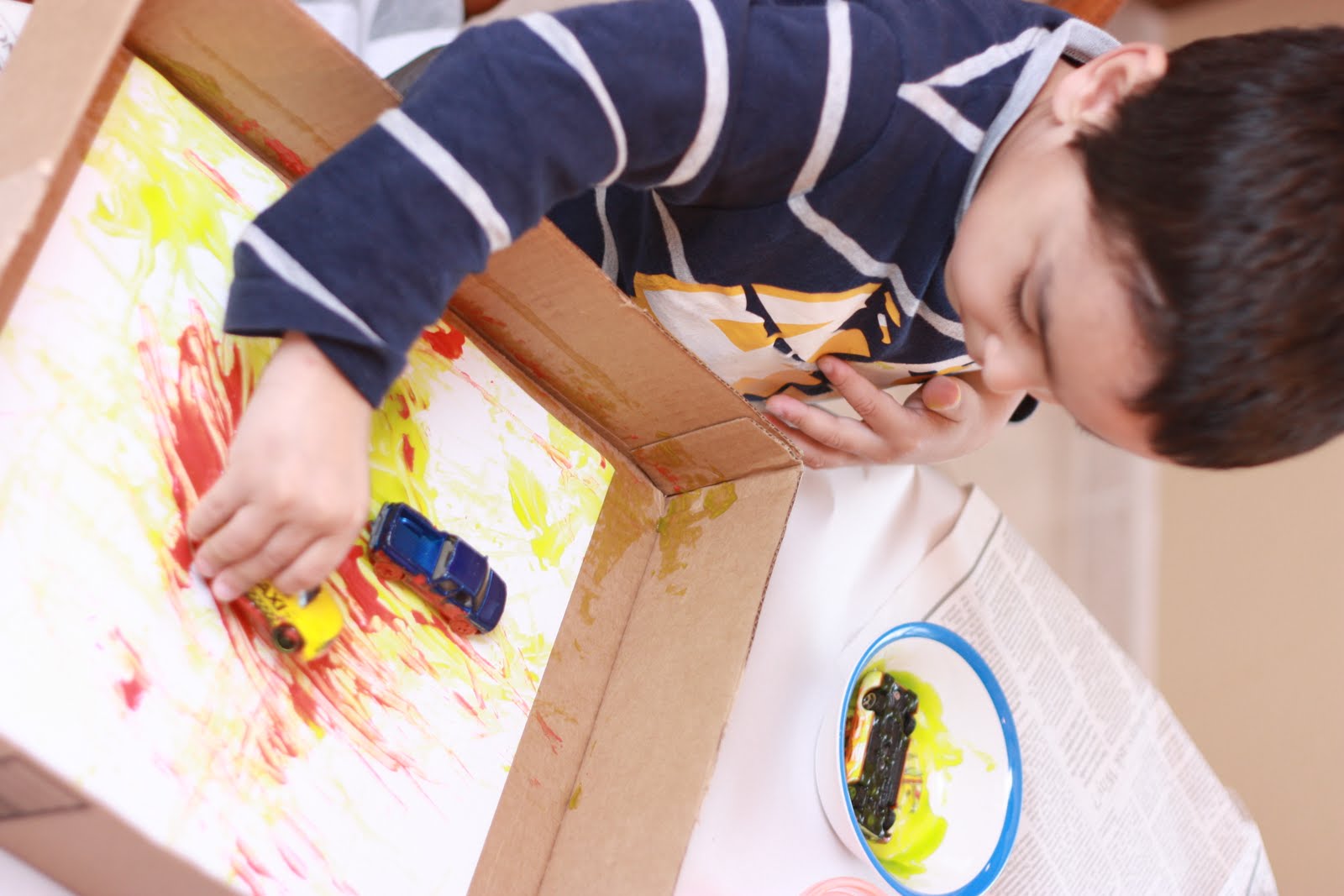 Rainy Day Art Activities: Painting with Matchbox Cars