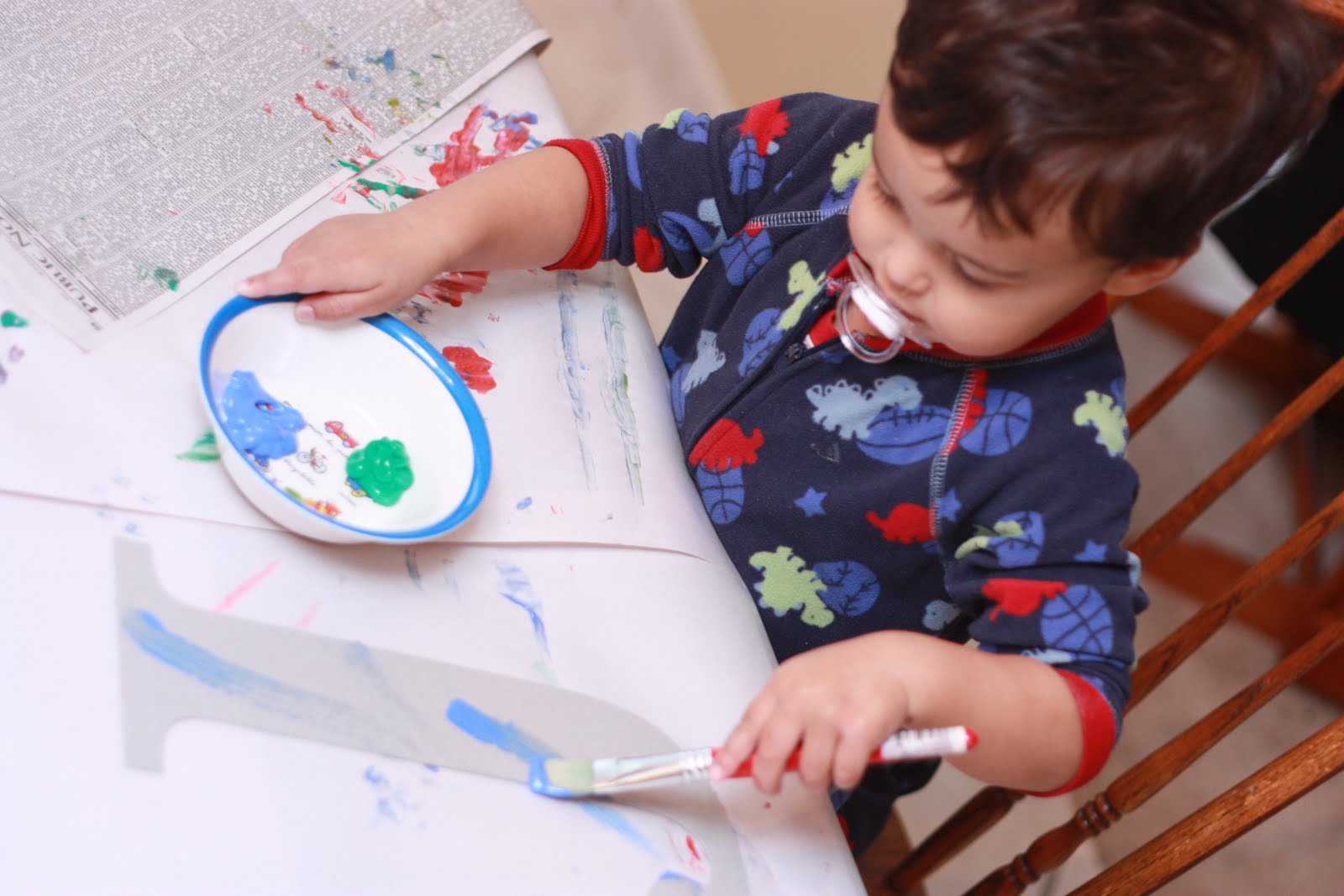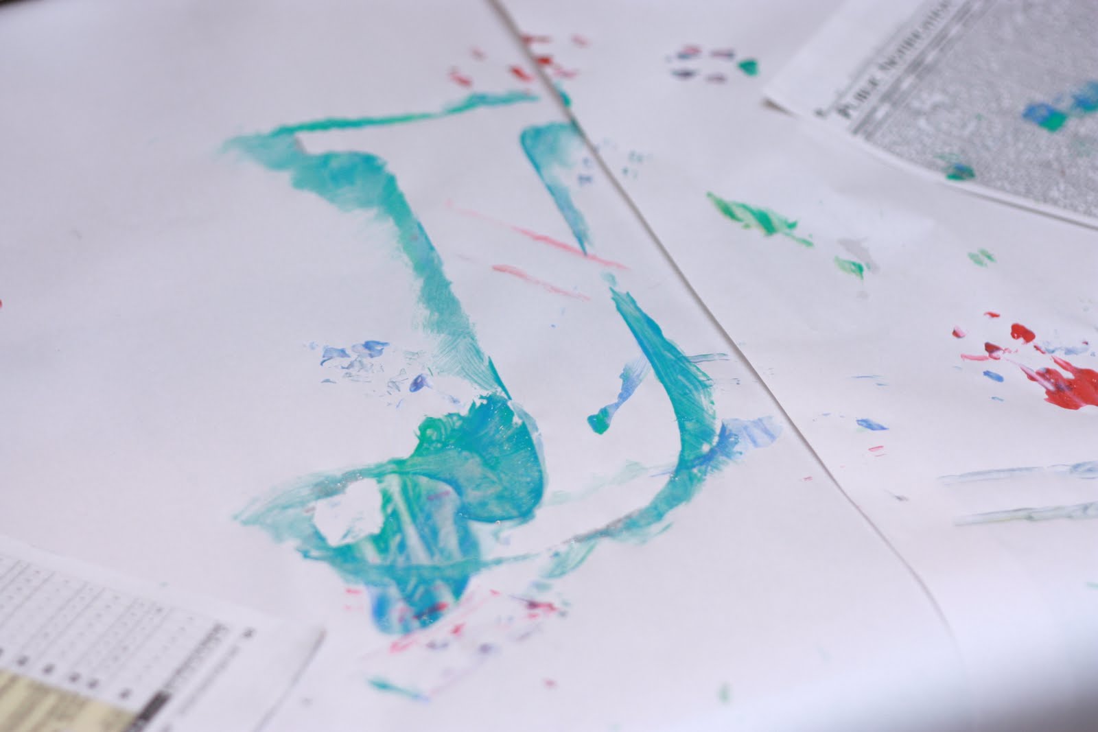 Jake also liked to dip and roll with the cars. It was a super easy, fun way to get them to paint. Usually neither boy is interested in finger painting (or getting their hands dirty):