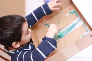 Today, out of sheer desperation, I broke out our hidden art supplies. Many of which the boys haven’t seen before: