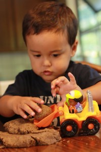 Posted: August 1, 2011 Filed under: Arts and Crafts, Fun Activity Leave a commentThe boys love the idea of playing in the mud, but not so much the reality of it sticking to their hands. And clothes. And shoes. I found a recipe for mud dough and whipped it up for the boys. Super easy. They LOVED it: