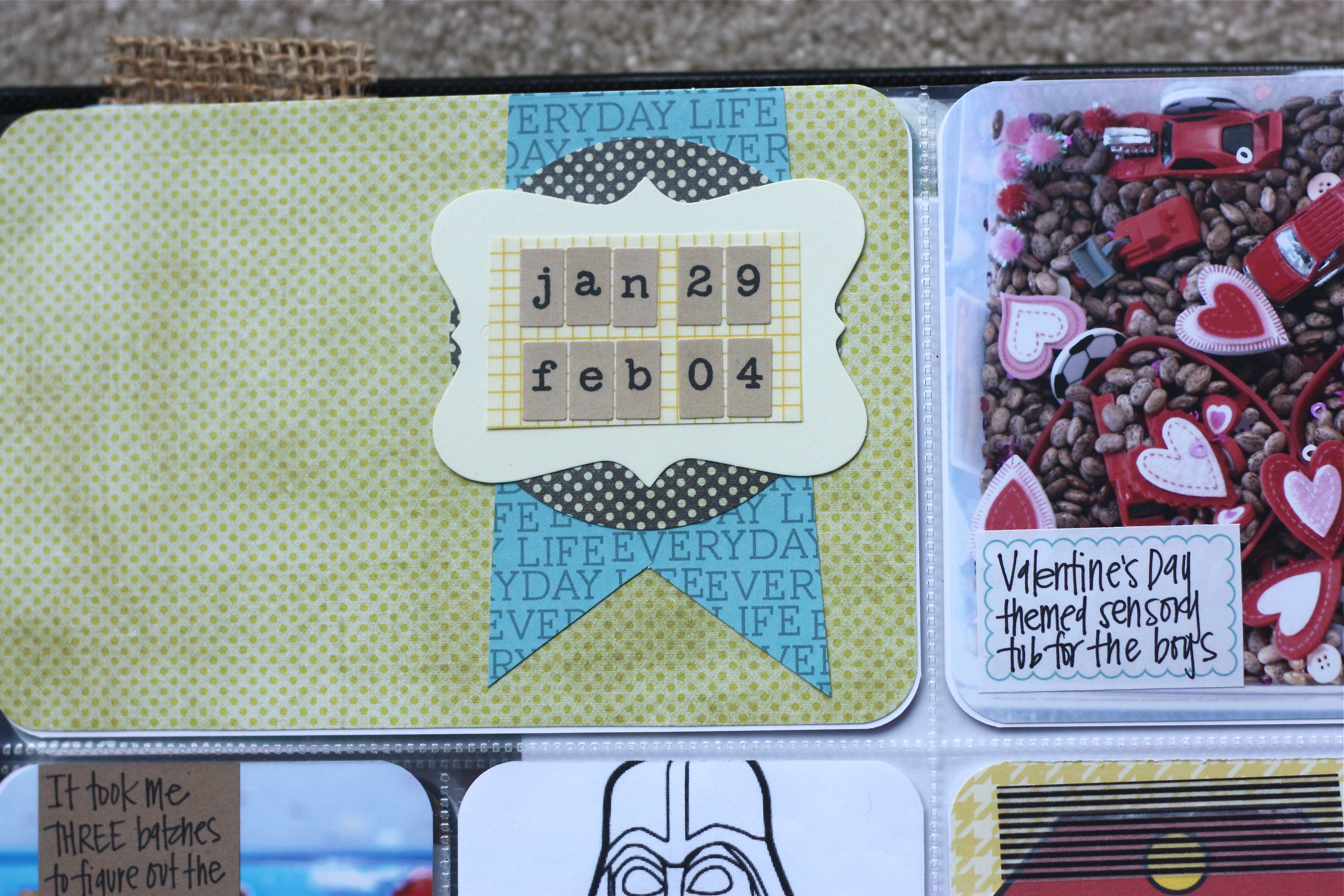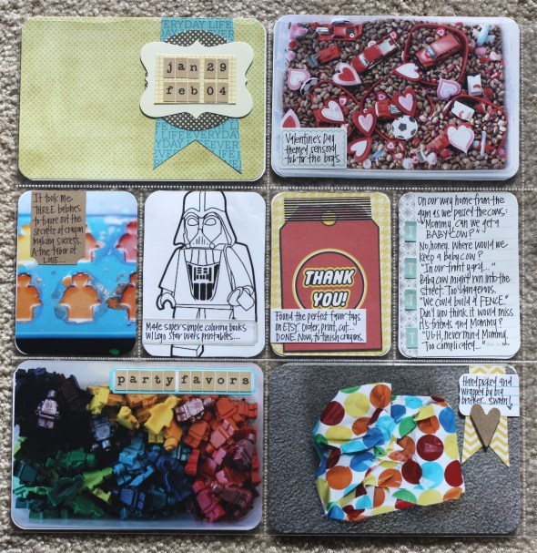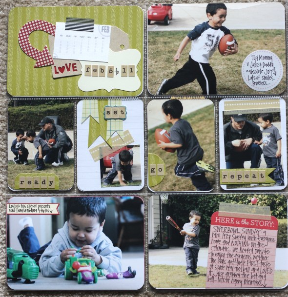 I really did not have enough pictures for this week. I was out of town and then the husband was out of town…luckily, we had some fun outside Superbowl Sunday and it made for some awesome Project Life-ing. I absolutely adore the middle section of this week: