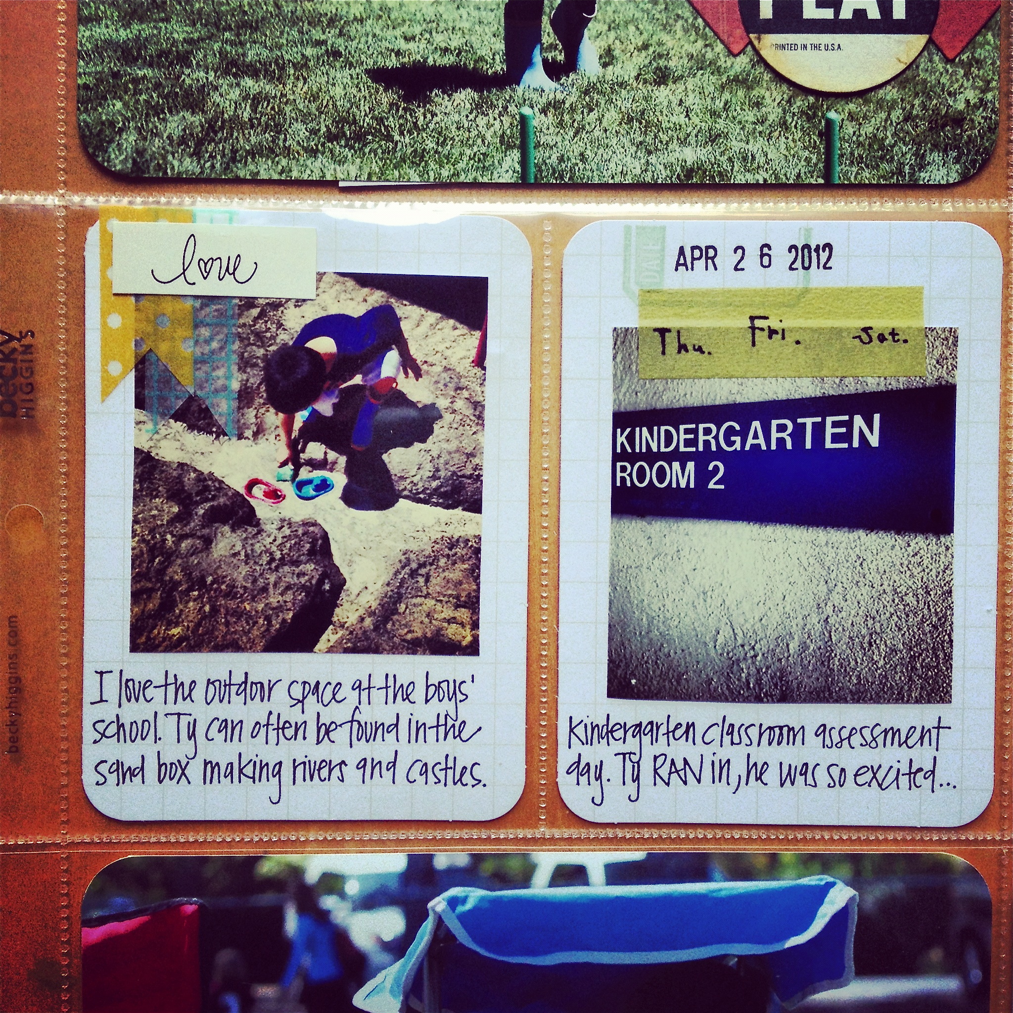 One of my favorite parts of this week is probably the most simple: white card stock, two pieces of washi, a little transparency and some journaling…