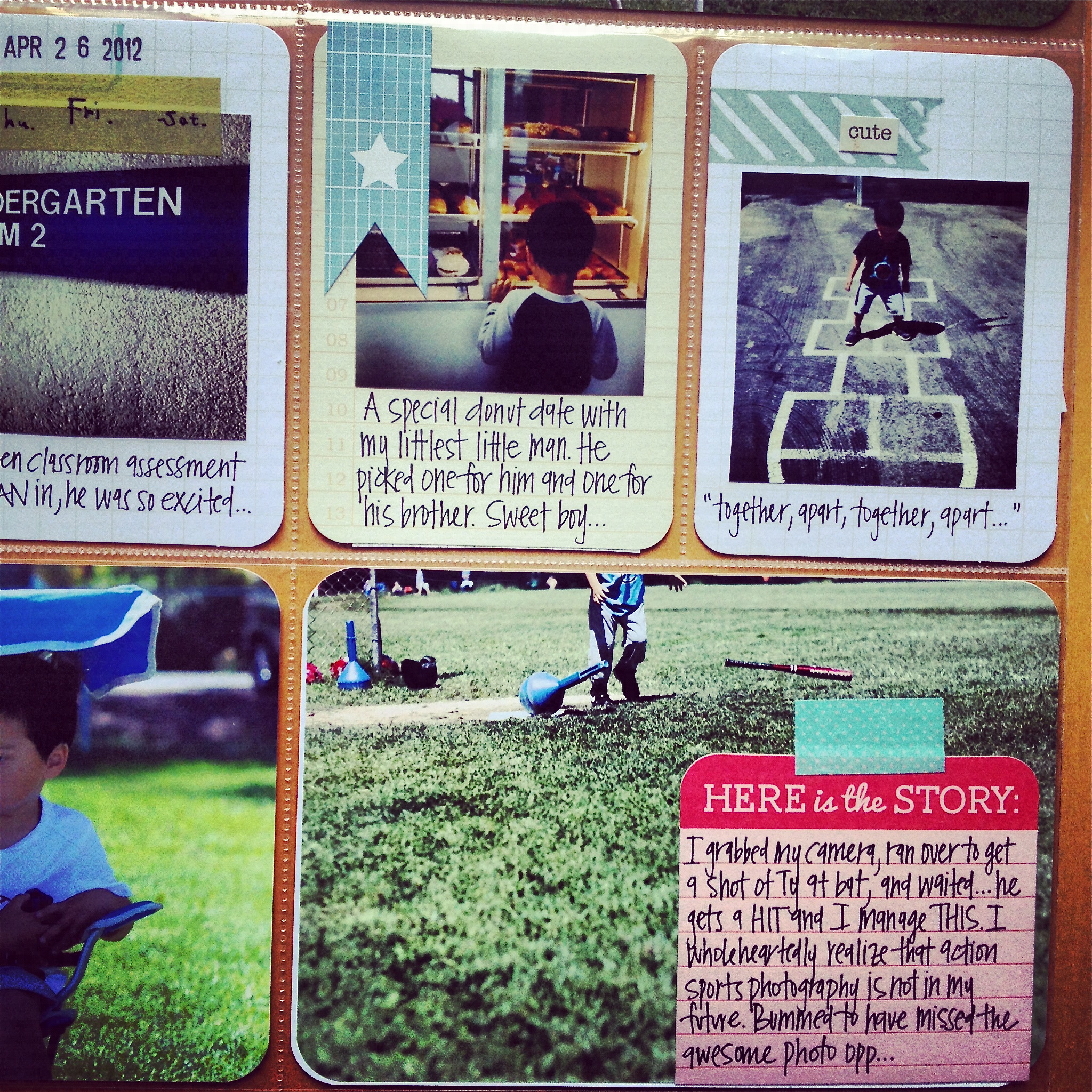 Included a photo out take this week, it makes me laugh every time I see it. I waited and waited for Ty to get a good pitch and hit the ball…and then totally missed the shot. Heh.