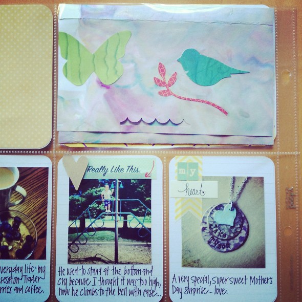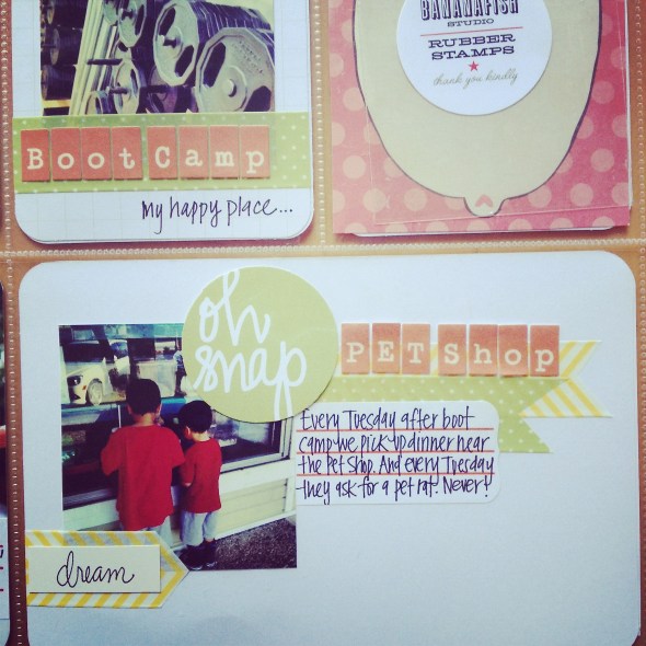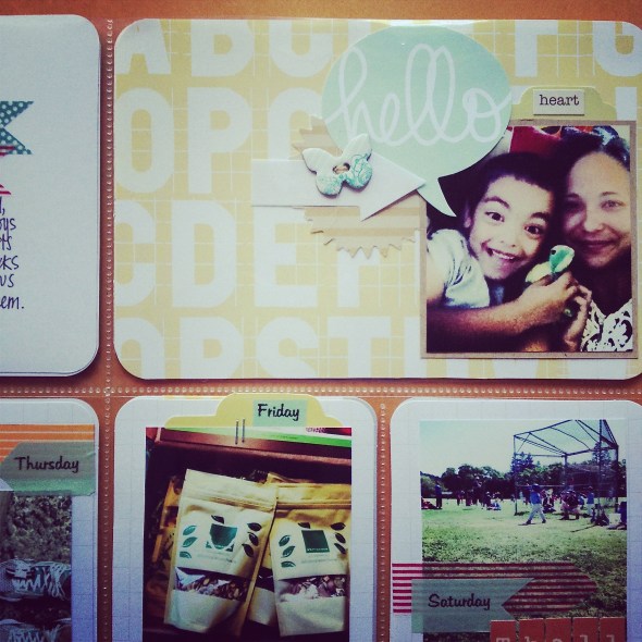 My favorite photo-scrapbooky PL addition to date. LOVE the yellow, blue, white, and kraft color combo: