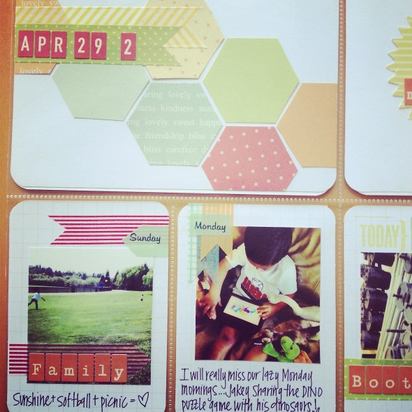 Having managed to complete three weeks worth, I lost steam when it came to the week 20 title card. I’ll finish it another day, but am really happy with the overall layout for the week: