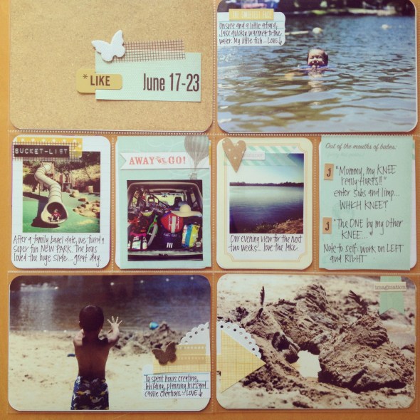 Posted: August 21, 2012 Filed under: Project Life 3 CommentsLeft side: trying to keep it super simple. Light blue, yellow, tan color streak…
