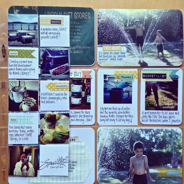 Right side with insert. I cut the coin collector page in half, printed out the Instagram photos as a collage on a 5 x 7 page. Cut to fit. Journaled little bits on the opposite side of each photo.