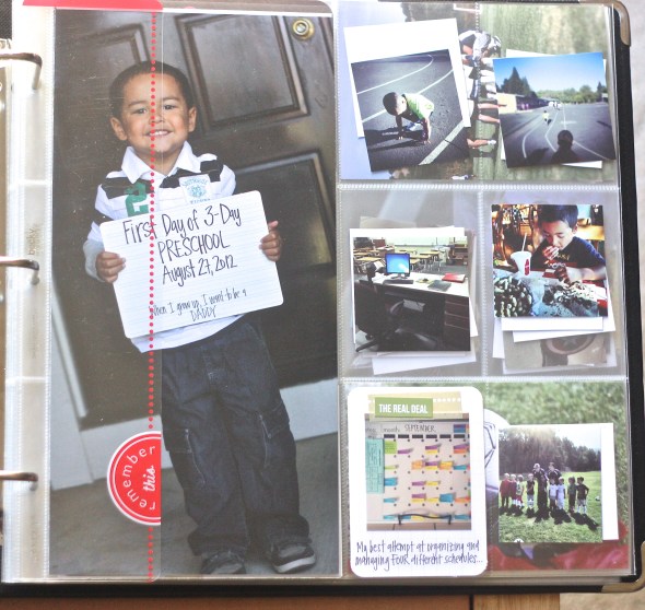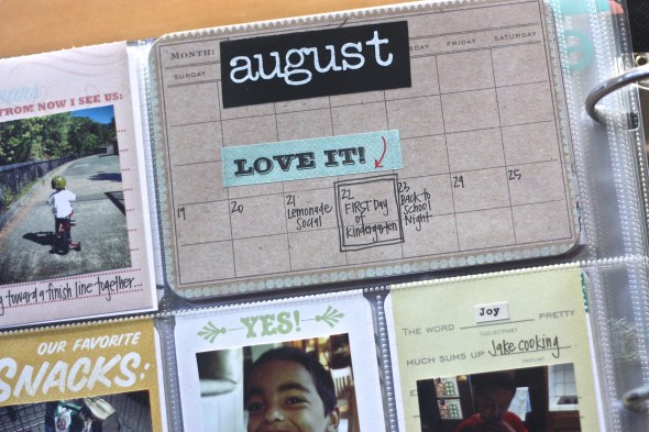 I thought I would include a week in progress and explain a little bit of my process. I have gone through and labeled each week with a simple notecard. I try to stay as current as possible with pictures. I upload weekly and print to Costco about every other week. I then cut out and place photos in each pocket, journaling and embellishing when I get some spare time.