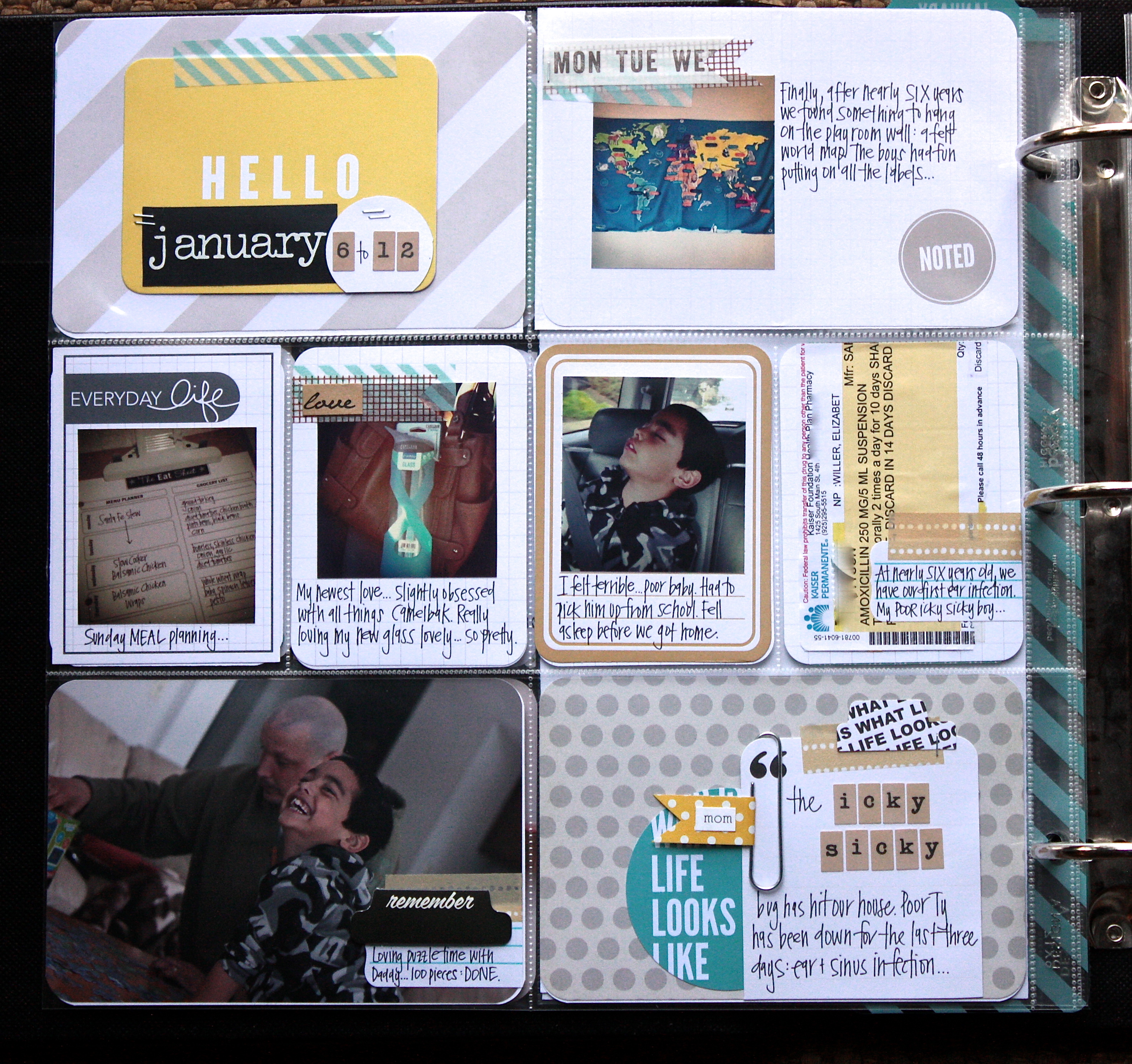 Posted: January 29, 2013 Filed under: Project Life 7 CommentsSome weeks come together easier than others, I really struggled with week two…a week of one icky sicky and one stir crazy mama:
