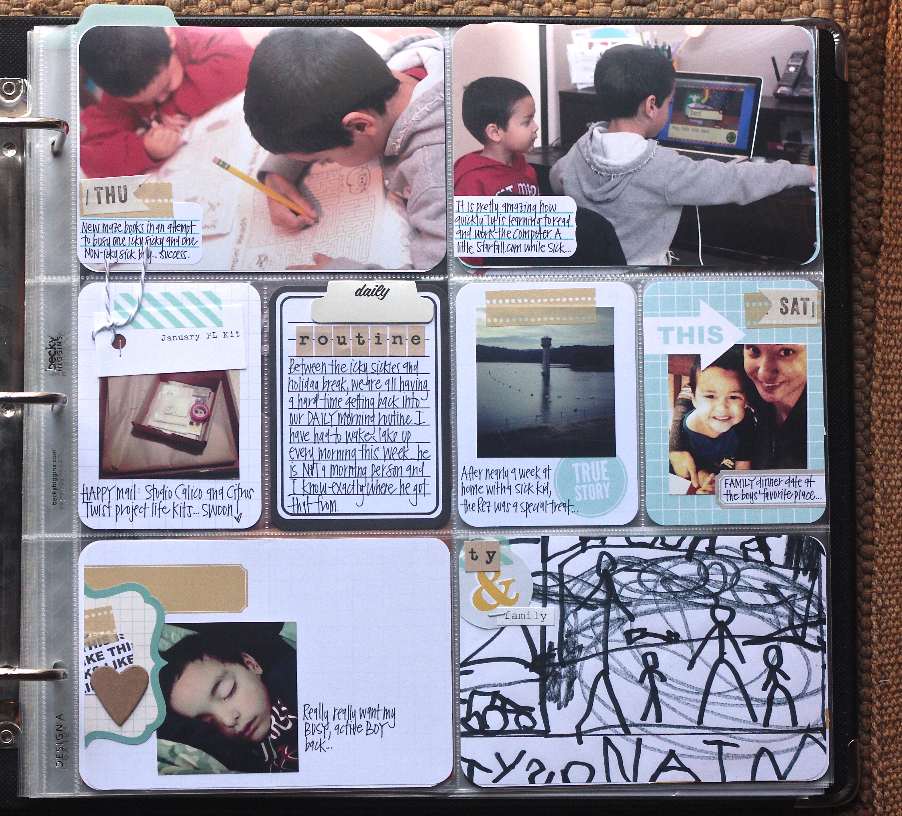 Happy mail in the form of the Studio Calico and Citrus Twist PL kits arrived. The boys colored and mazed…ended the week with a family dinner date: