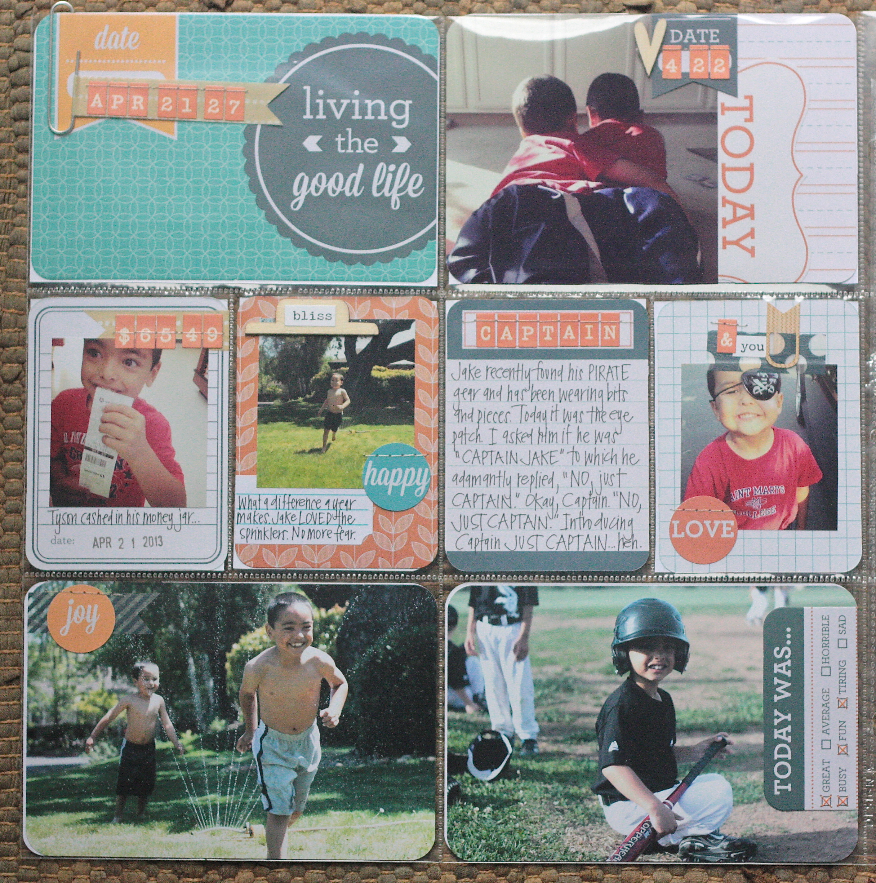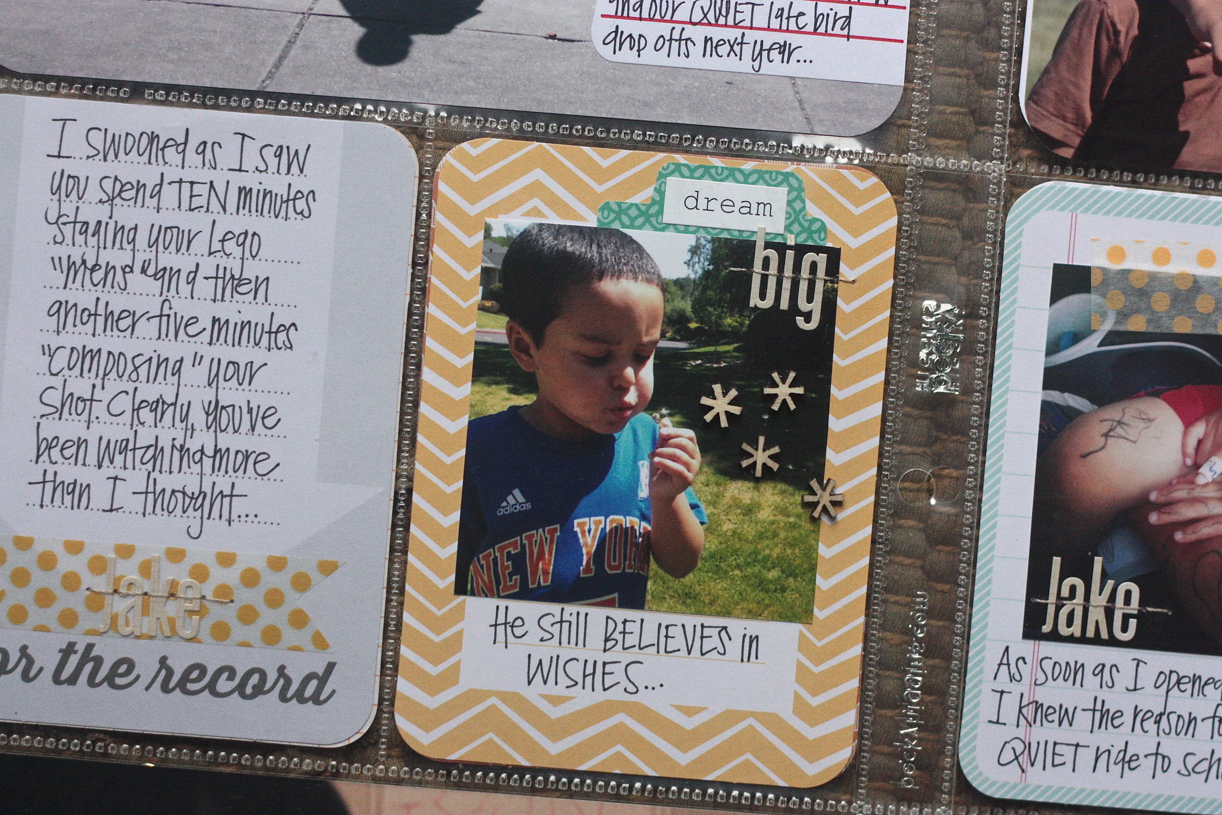 I have the same core kit buying issue! I bought Midnight and Honey last week, despite buying the whole Jade kit from HSN a few months ago. Sigh. Love these pages, and love the idea of turning Day in the Life into a photobook. How do you remember to take enough photos and write down what you did? I always start really enthusiastically, then the day gets busy and I forget everything.