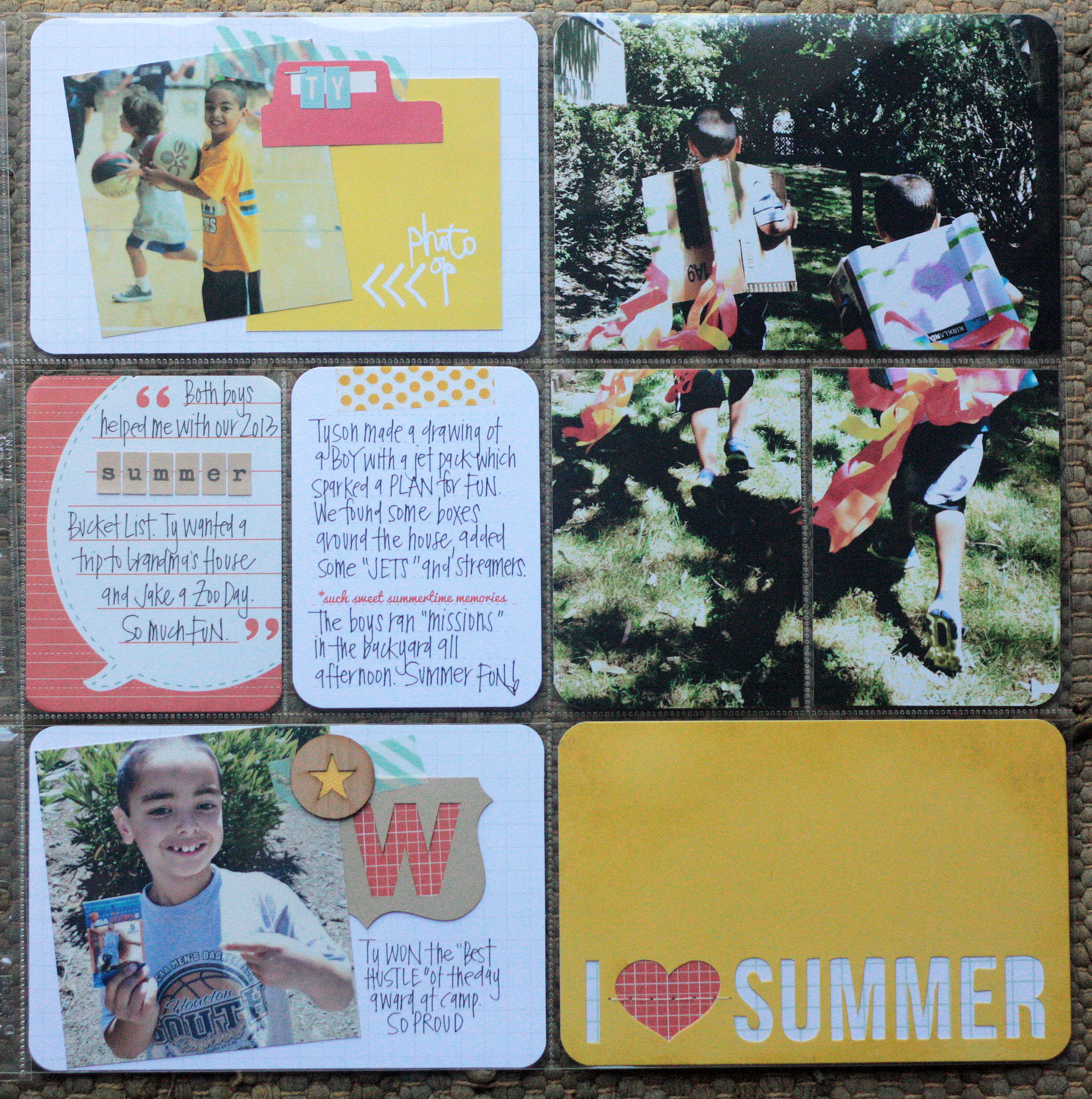 Finding our summer break groove. Tyson’s first basketball camp. Fun with new journal cards and experimenting with different photo sizes: