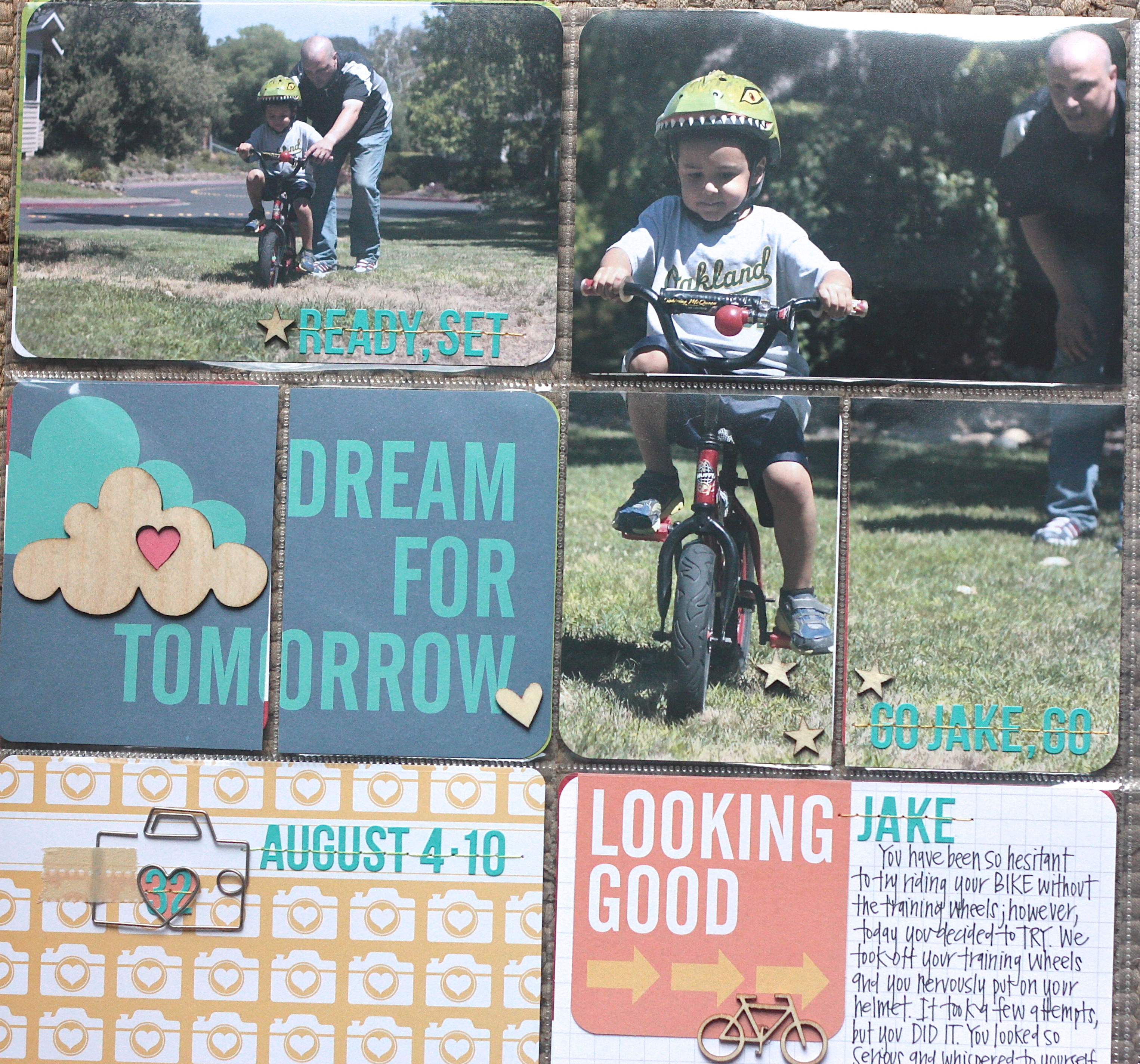 When I started this week, I thought I had completely forgot to take pictures. I didn’t have any to work with. It turns out, I just hadn’t picked up weeks worth from Costco. Before I knew I had pictures, I had asked each boy to design/make his own layout. They LOVED it and the pieces they made are by my favorites of all time. I kept Ty’s layout intact as it tells the story of our week pretty well and plan to incorporate bits of Jake’s into other layouts. It is likely that I struggled with this week because it was the week of HUGE change in our house. The landscape of our forever changed: out with the toddler/car bed and in with TWO BIG BOY rooms. Ty got a new desk, his little room now resembles more of a dorm room than little boy room. Jake got the top bunk and a new dresser. They both love playing in their “big boy” rooms so much now and Jake is so proud of his new space: