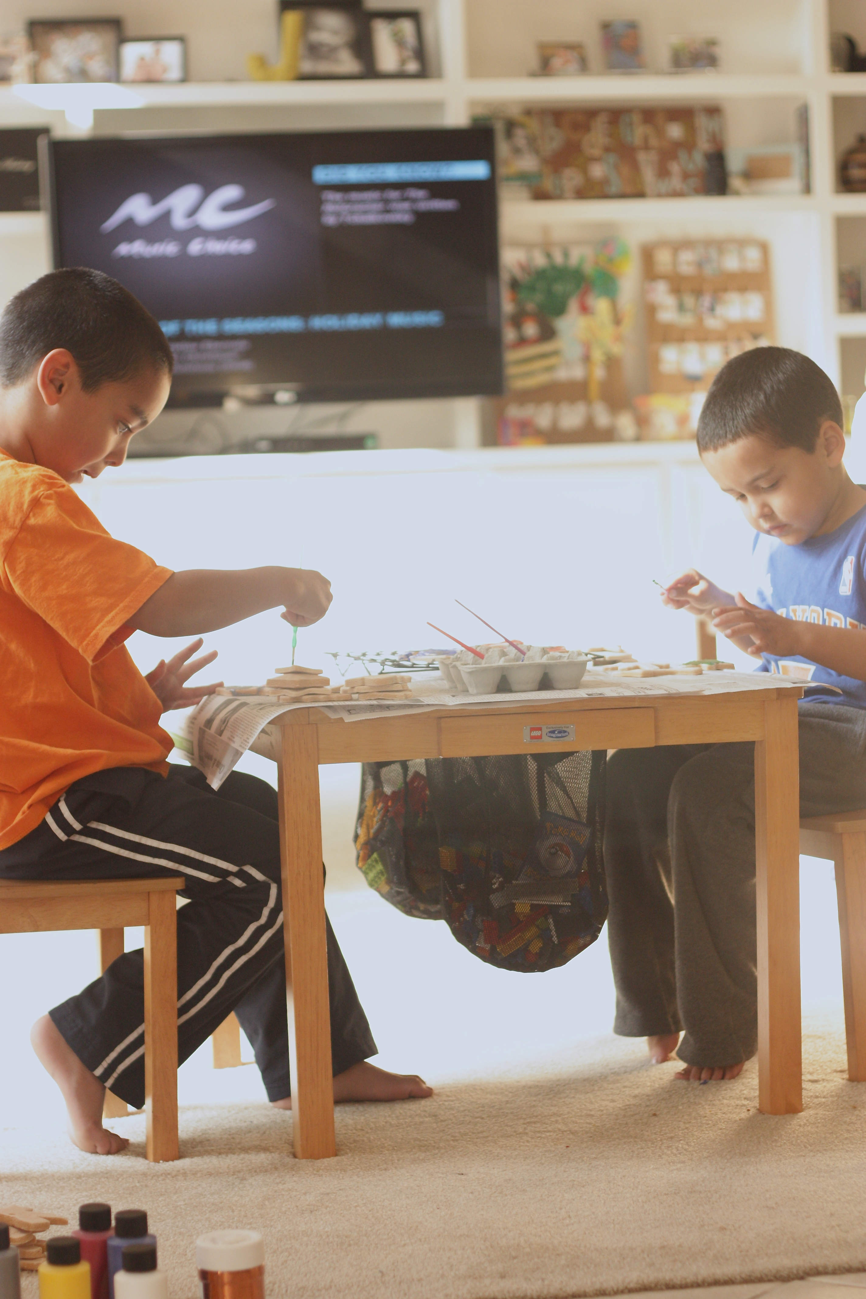 The boys sat and worked to make their candles “beautiful” for a long time…love that it was great fine motor skills practice for Tyson as well: