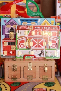 Jake’s Christmas Morning favorite was a super cool hide and seek puzzle. You lift the doors of the puzzle and there are animal magnets under each one. He loved having me move them around and then asking him to find each one: