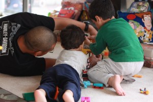 *Big brother tickles and little brother giggles: