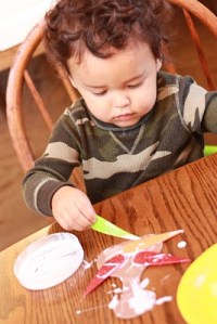*He enters a whole new world of baby food: