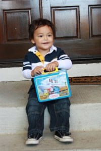 *Dr. Ty all ready to trick-or-treat with his Thomas treat bucket: