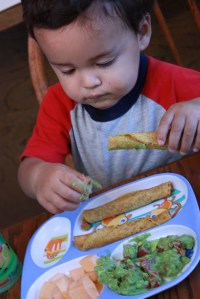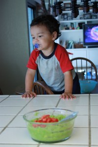 Dinner time. Jake tears up the guacamole as I thought he would. He left a little for Daddy:
