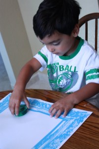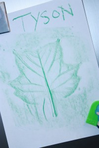 While outside on our dinosaur-mud hunt, we picked up some leaves to do leaf prints: