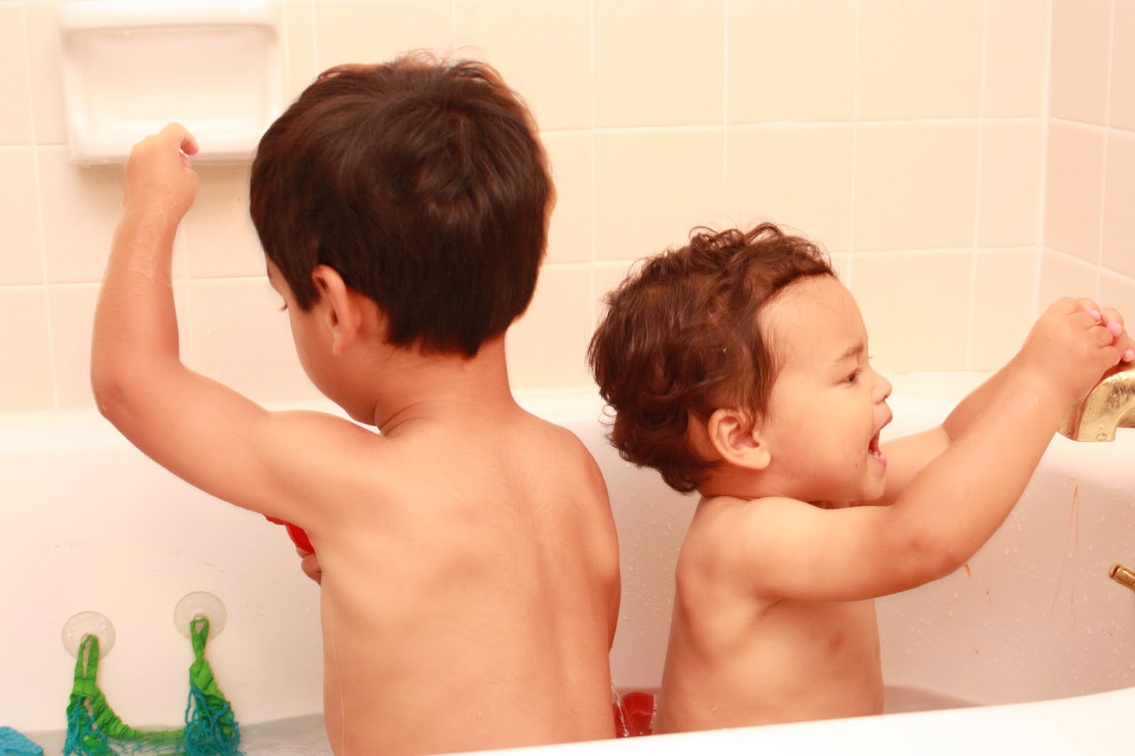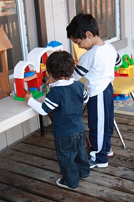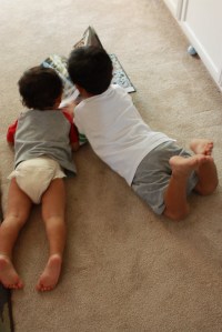 *Big brother tickles and little brother giggles: