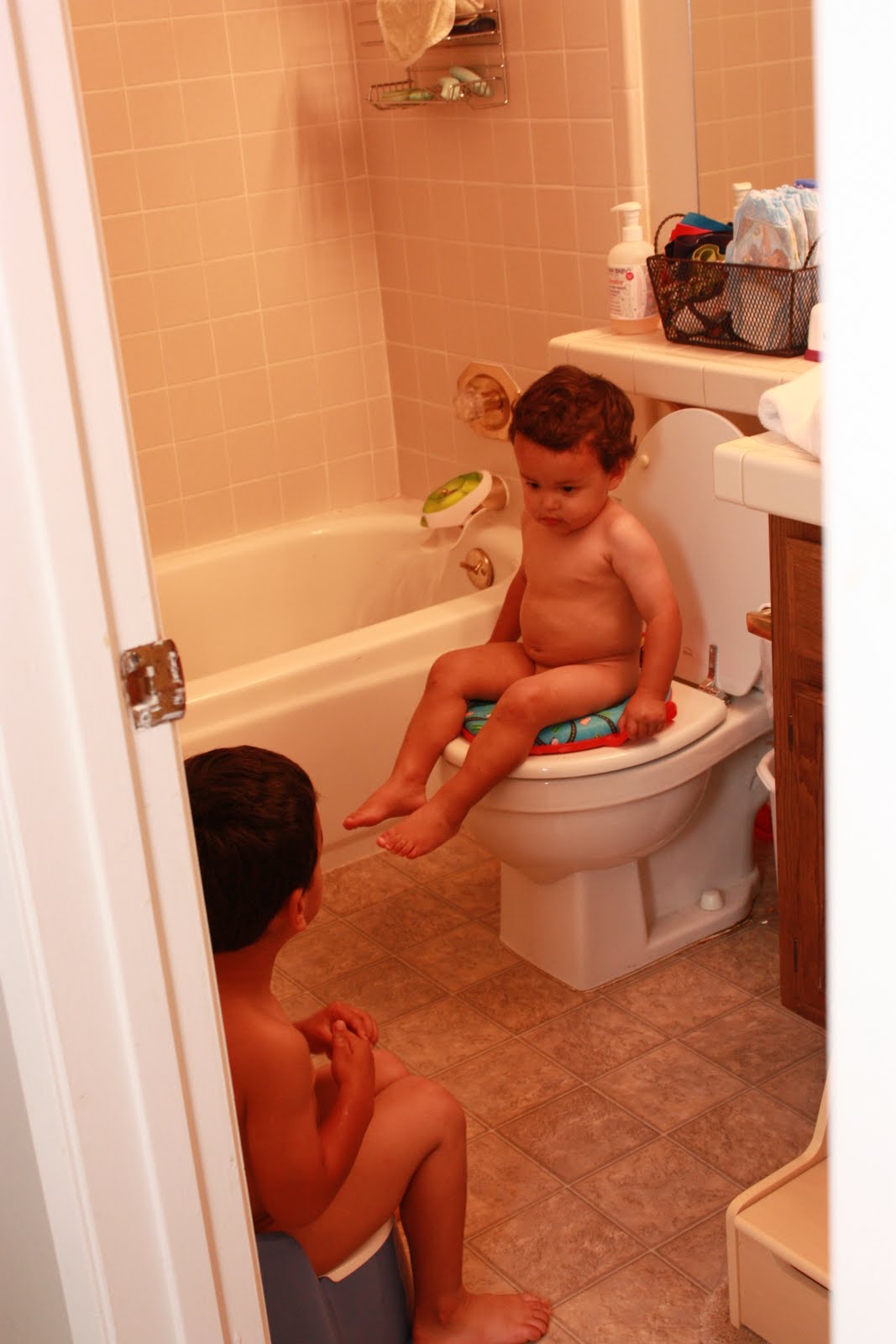 Potty time. Jake has to do EVERYTHING his brother does. EVERYTHING: