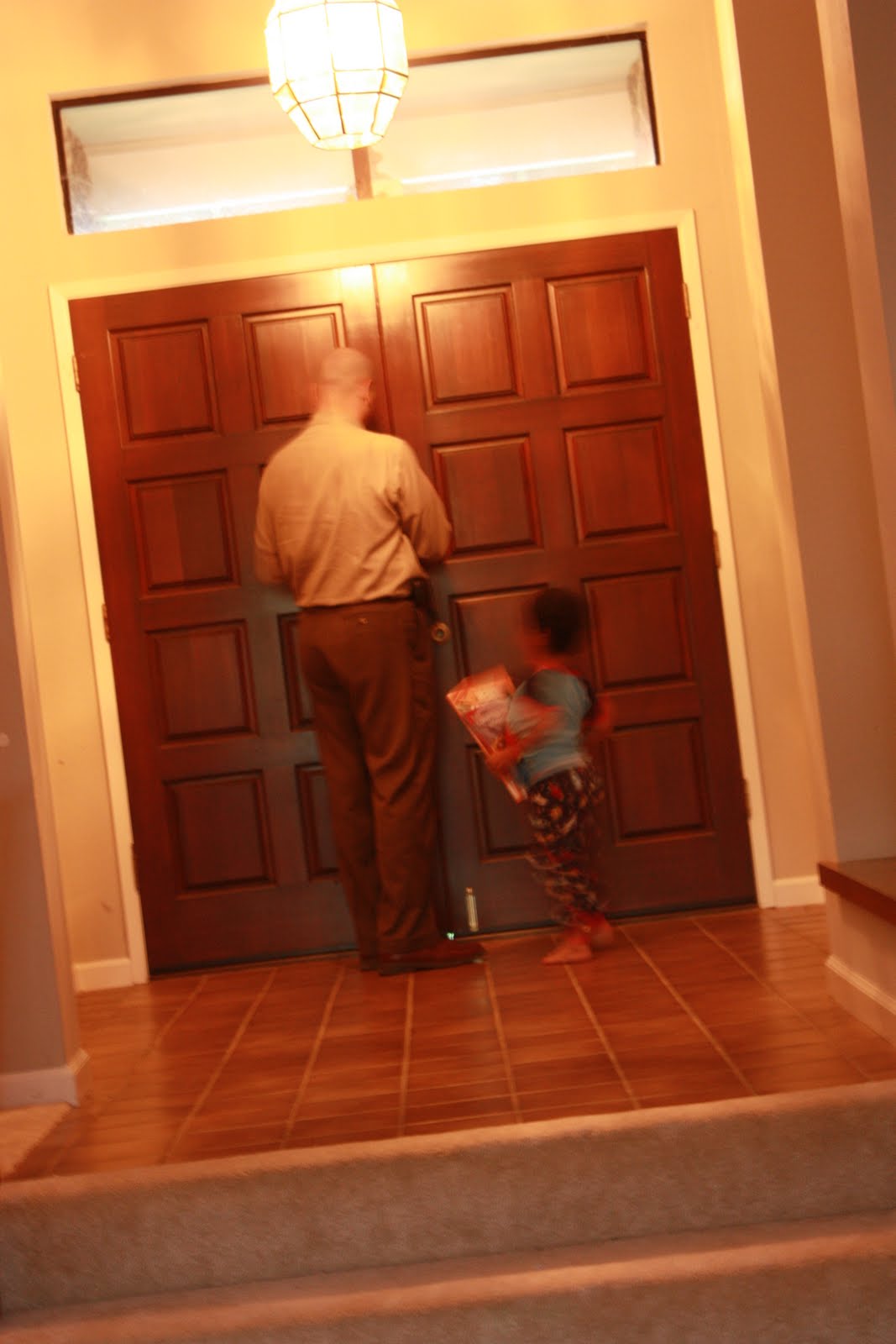 5: 45 – walk up to the play room after being dragged upstairs by Ty to see his trains