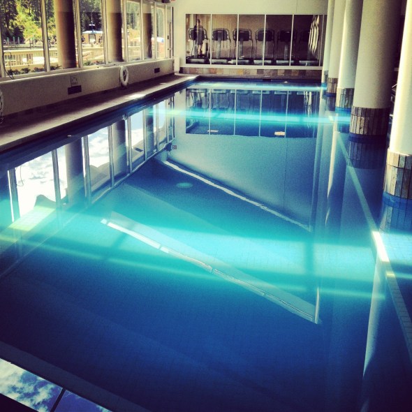 While on vacation last week, one of my goals was to make my way to the pool and swim real laps. For the first time in over twenty years. I thought I would dive in and automatically retain my ten year old swim team glory and form. Not so much. You see that lady there on the treadmill, I am certain she got her fill of free live entertainment watching me splash my way across the pool only to realize that was ONE length. I attempted a flip turn, thinking I could manage the way I did when I was ten, again, not so much. I nearly killed myself.