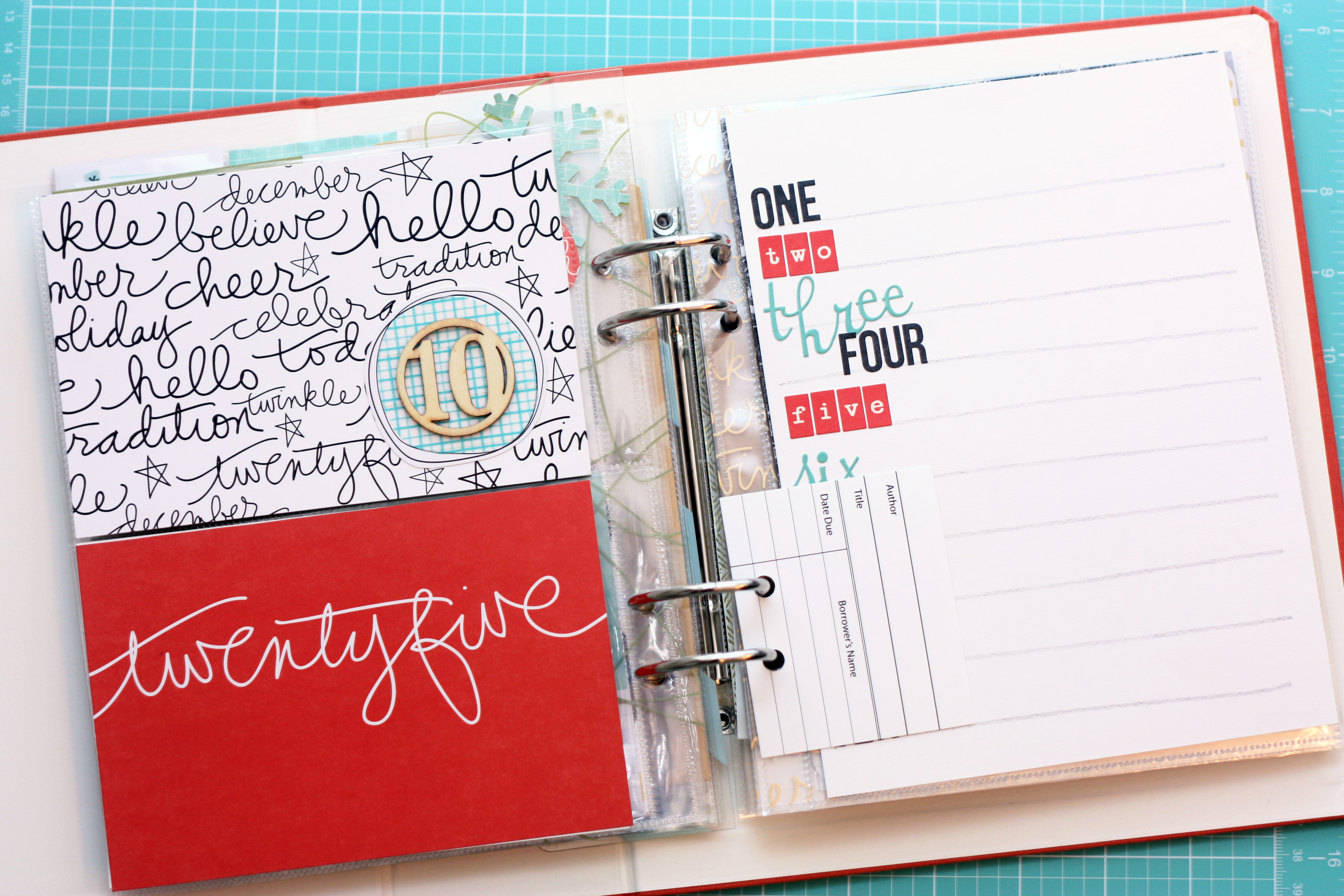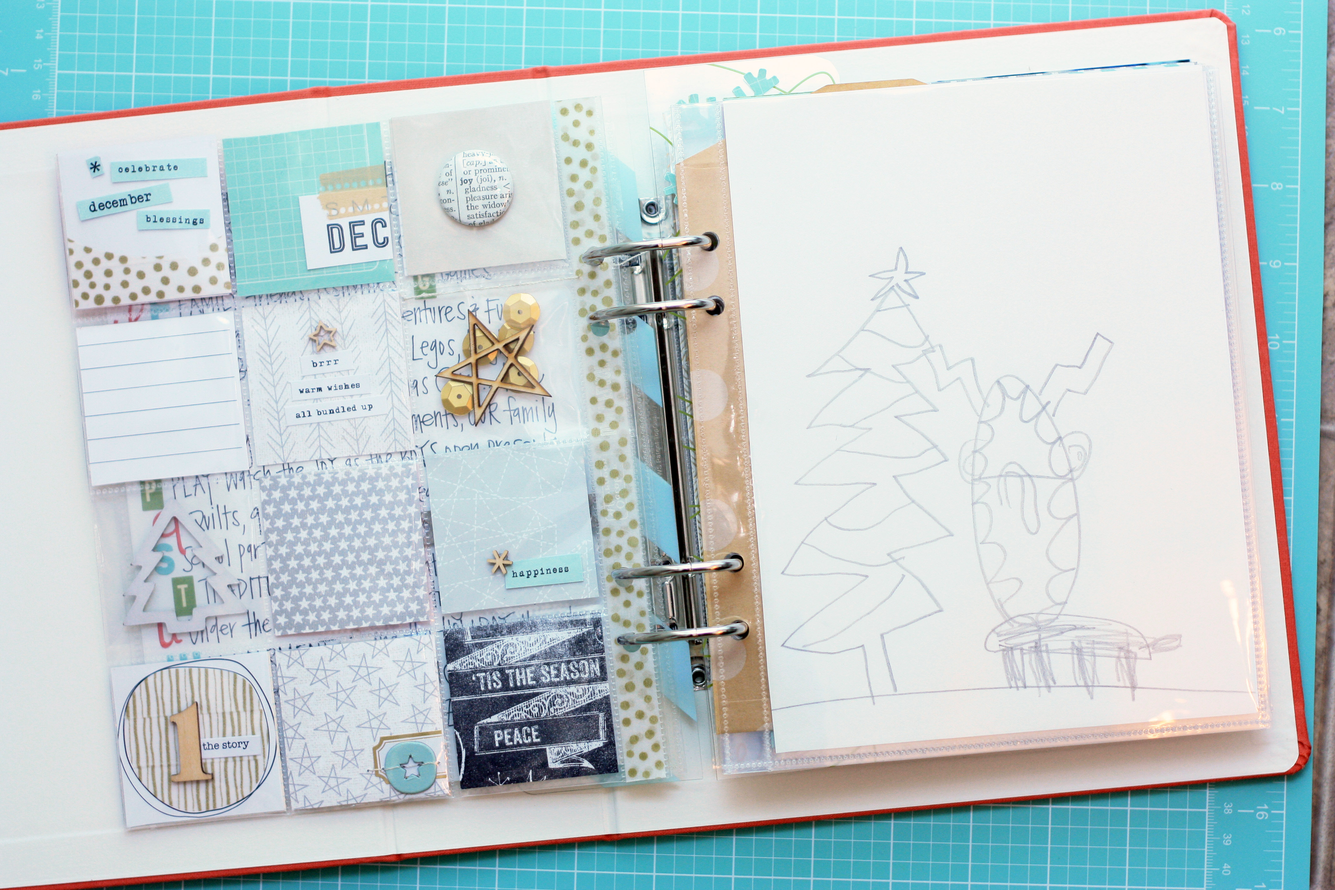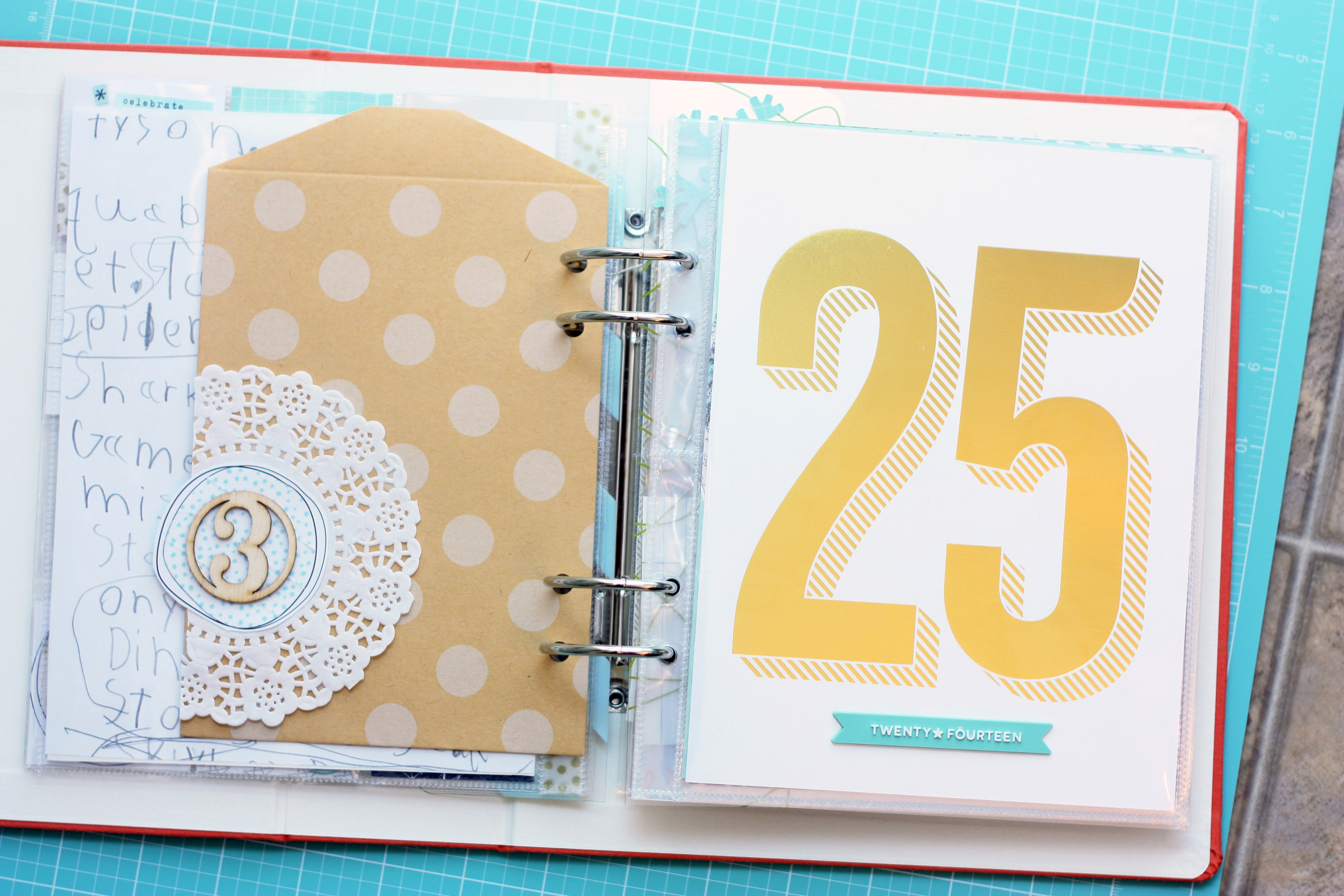 Moment 19: will likely use for the boys’ schoolwork and/or Santa Letter. You can also see the backside of the confetti pocket. I found it a lot easier to use an Exacto knife, slice along the top border, place the goodies inside, and use washi tape to close. Half the time it takes to hand stitch a pocket closed and almost the same final look.