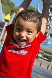 * He can hang with the bigger kids at the park now. Bigger meaning a few months older than him.